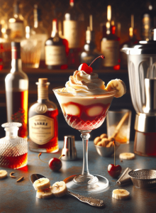 Sweet cherry and banana cocktail with vanilla ice cream