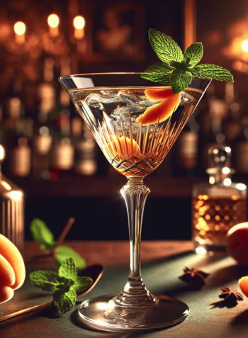 Sophisticated blend with lush fruit, herbal, and minty notes of Brandy, Apricot Brandy, Mint Liqueur (clear), Anise Liqueur